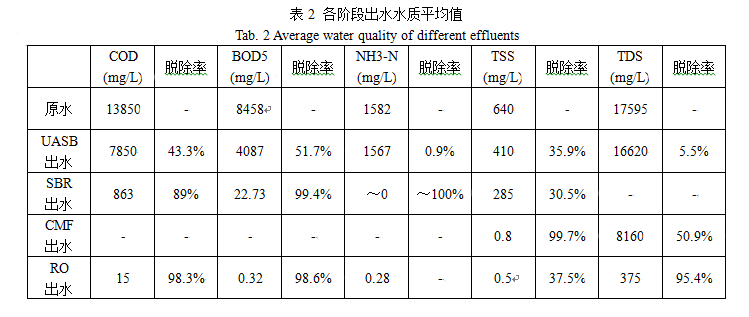 经过UASB、SBR、CMF预处理后的反渗透进水水质大致如表3所示。该数据为2006年8月Filmtec反渗透膜元件投运时取样结果,但要注意渗滤液水质受到降雨等因素影响波动较大,尤其是TDS, COD等值。
